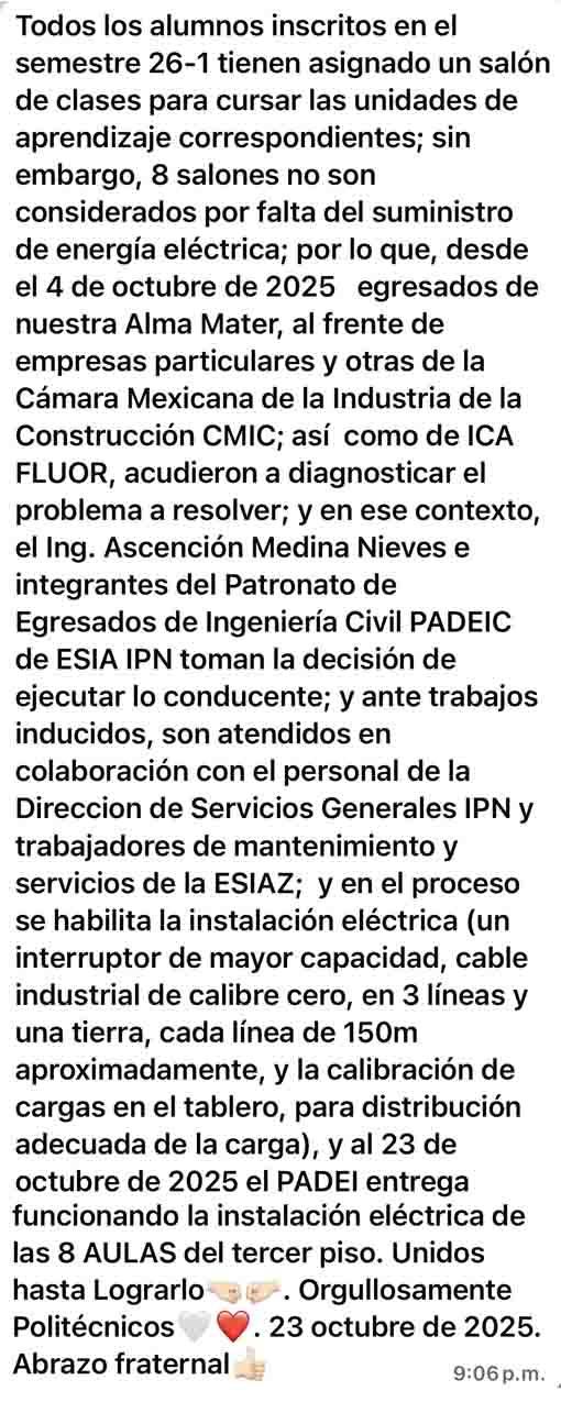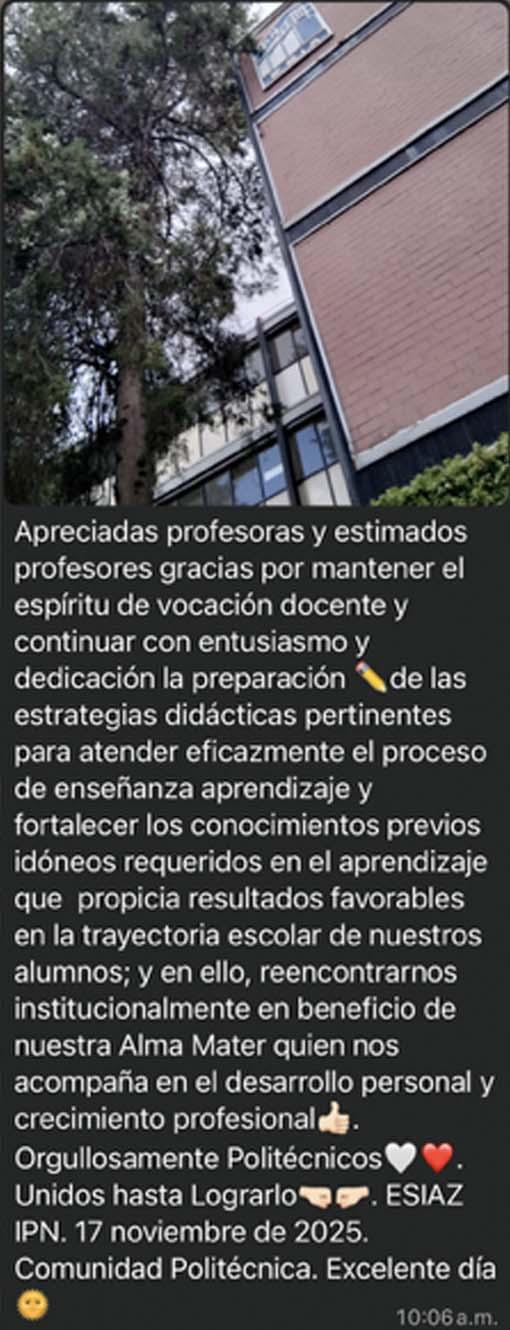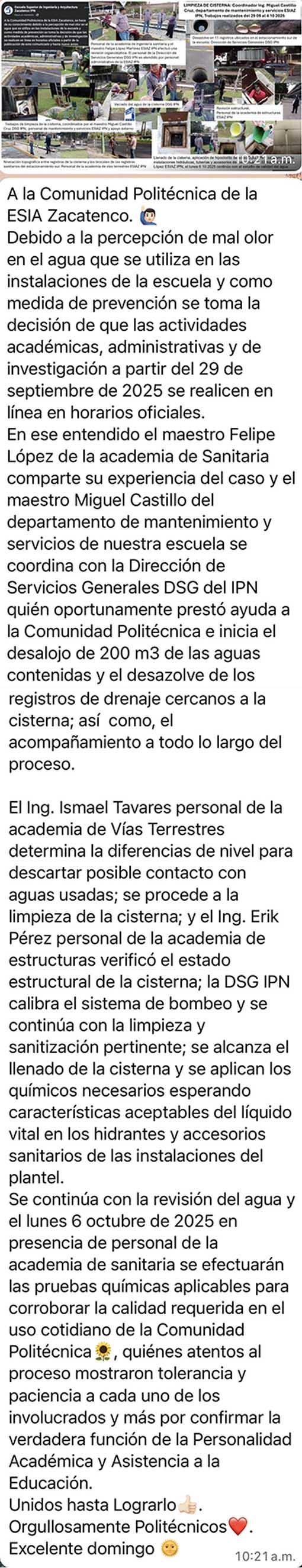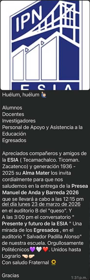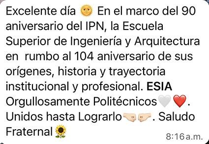 Es un honor tener el nombramiento de director de la Escuela Superior de Ingeniería y Arquitectura Unidad Zacatenco del Instituto Politécnico Nacional y con respeto a nuestras autoridades y frente a la comunidad de nuestra escuela, que hoy unidos con ustedes haremos nuestro máximo esfuerzo y dedicación para cumplir con la cobertura, equidad y calidad educativa que distingue a la institución; y en ese sentido fortalecer la investigación educativa, científica y tecnológica, y la vinculación con los diferentes sectores, apreciando la perspectiva de género, sustentabilidad e internacionalización para atender el compromiso con la sociedad de formar profesionistas e investigadores que promueven la innovación, capaces de desarrollar, planear, diseñar, proyectar, construir, operar y mantener obras y servicios de infraestructura que contribuyen al bienestar social, logrando el Programa Académico de excelencia y calidad educativa que mantiene en alto el lema de la institución, "La Técnica al Servicio de la Patria".